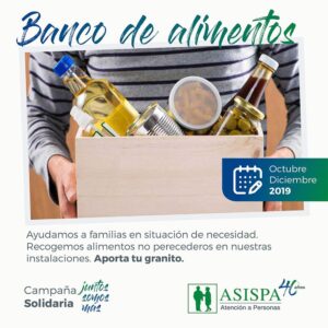 Como cada año, ASISPA, asociación sin ánimo de lucro dedicada a la atención integral a personas dependientes, ha puesto en marcha su campaña solidaria de recogida de alimentos no perecederos destinados a familias en situación de necesidad.