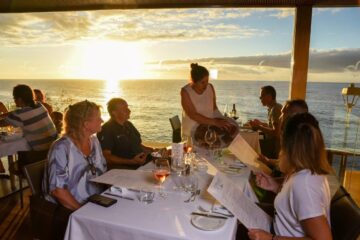 Su amplia oferta se completa con una excelente carta de vinos, entre los que destaca el Brunelli’s –el vino de la casa-, variados postres, un cuidadoso servicio, y la posibilidad de contemplar las mejores puestas de sol de la isla desde su impresionante terraza abierta al mar. Un impresionante ventanal ofrece la mejor vista al Océano Atlántico, única en el mundo y de un valor incalculable.