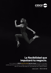 CESCE, como uno de los principales operadores del seguro de crédito en el panorama actual nacional e internacional, se ha planteado como uno de sus objetivos publicitarios este año reposicionar su producto estrella: CESCE MASTER ORO. Más en concreto, la solución CESCE MASTER ORO Pay Per Cover, única en el mercado, “con la que el usuario puede gestionar el riesgo de impago en su empresa de forma flexible, asegurando solo los clientes que elija y sin necesidad de cubrir toda la cuenta”.