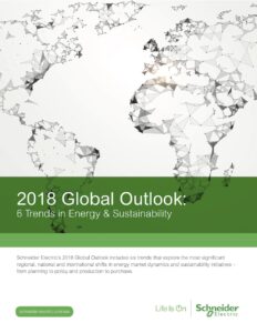 El mercado energético global está inmerso en un gran cambio. La energía ha pasado a ser un activo esencial para las empresas y la sostenibilidad, una variable crítica que condiciona el acceso a la financiación, la capacidad de atraer talento y el acercamiento a un consumidor más informado y concienciado. Por ello, conocer las tendencias en energía y sostenibilidad durante este año y qué impacto tendrán en las empresas es de fundamental importancia. En su último informe Global Energy Trends 2018, Schneider Electric ha identificado seis tendencias que aportan una visión estratégica de los cambios locales, nacionales e internacionales más significativos en las dinámicas energéticas y en las iniciativas de sostenibilidad, desde la planificación y las políticas, hasta la producción y la compra de energía.