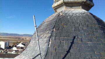 Pero volviendo a lo mencionado al principio, la parte peor parada durante todos estos años han sido los torreones con tejado de pizarra. Poco ha sido su mantenimiento, así como su reparación puesto que son unas torres de difícil acceso y nadie ha podido subir a revisar su estado ni repararlas durante todos estos años. «Ha sido ahora la primera vez qué, montando un andamio, se han podido rehabilitar de una manera completa», así lo expresa Antonio Andrés, encargado de la empresa tejados de pizarra en Madrid Andrés Ramos, a la que se le encomendó estos trabajos. «La rehabilitación de los tejados de pizarra ha sido integral desde su base de madera hasta el acabado en pizarra y todos los emplomados es un trabajo minucioso y complicado» dice Antonio Andrés, «ya que a día de hoy este tipo de trabajos ya casi no se hace». Por eso a su vez, según cuenta «son los más bonitos de hacer ya que son casi obras de arte».