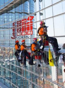 El equipo de trabajos en altura de Gremisa Asistencia, se dedica a proporcionar un servicio rápido, seguro y eficaz. «Empleamos en la reparación material resistente con clasificación de impacto UL2218, Clase 4 y para nuestra seguridad usamos material Petzl; arneses, cordaje, cascos y aseguradores».