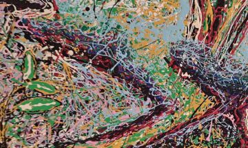 En la segunda parte se puede apreciar un cambio radical en el estilo del autor que se lanza a la búsqueda de nuevos cromatismos. Pinta en ocasiones con el tubo en la mano, directamente en el soporte, sin utilizar el pincel haciendo uso de la técnica de “dripping”.