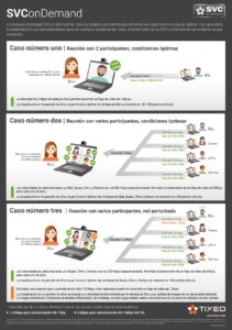 Maribel Poyato, Country Manager de Tixeo para Iberia y Latam explica “SVC on Demand permite un ahorro del ancho de banda del 30% de media con respecto al resto de tecnologías SVC y un ahorro muy superior comparado a las tecnologías AVC (Advanced Video Coding) que no se adaptan a la red. Además SVCoD de Tixeo conserva todas las ventajas de la arquitectura del servidor de retransmisión de medios, pero sin los inconvenientes. La innovación consiste en tener en cuenta el contexto de la reunión en la estrategia de codificación. Cada cliente codificará la transmisión de vídeo en función de cada uno de los demás participantes, su capacidad de red, su equipo y su resolución de pantalla. De hecho, cada participante simplemente envía las capas de vídeo necesarias en una reunión. Por lo tanto, Tixeo elimina cualquier sobreconsumo de ancho de banda añadido por un códec SVC clásico”.