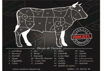 Cadera (17): es la parte más alta de la pata trasera. Ésta presenta un corte jugoso sin apenas grasa, ideal para filetes tiernos para la plancha.