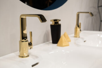 Y a la hora de imaginar, también se pueden idear contrapuntos: el dorado puede ser una buena contracara del negro, el gris y el blanco en los azulejos. Jens J. Wischmann, director ejecutivo de la industria de sanitarios alemana, hace una comparación con la moda. Al igual que en el diseño de indumentarias, el dorado también puede ser un sinónimo de algo valioso y llamativo.