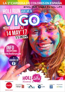 La carrera de colores más exitosa de Europa vuelve a Vigo. Como sucediera en ocasiones anteriores, se espera la participación de miles de holi runners que serán rociados con toneladas de polvo de color Holi de la cabeza a los pies. La cita es el domingo 14 de mayo.