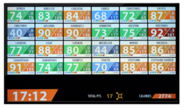El objetivo es empujar la frecuencia cardíaca hasta la zona “naranja”, o al 83% del esfuerzo máximo, y permanecer en ella durante 12 de los 55 minutos de la clase, como fórmula orientada 100% a los resultados. El verde señala un esfuerzo relativamente bajo y el rojo indica que no es conveniente permanecer en esa franja por mucho tiempo pues es la intensidad que está próxima al máximo personal.