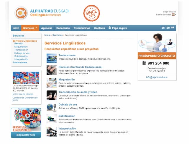Optilingua International ha reforzado su presencia en Euskadi y Navarra con la creación de ALPHATRAD EUSKADI SERVICIOS DE TRADUCCIÓN S.L., que contará a partir de ahora con cuatro nuevas sucursales: en Bilbao/Bilbo, San Sebastián/Donostia, Vitoria-Gasteiz y Pamplona/Iruña. Con estas nuevas oficinas, esta empresa, de ámbito internacional, responde a la creciente demanda de servicios lingüísticos y de traducción en la zona y le permite reducir  distancias con sus socios comerciales.