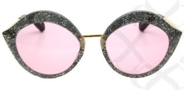 Un modelo de gafa de sol divertido y luminoso, sin descuidar la elegancia proporcionada por su acetato en exclusiva con purpurina.