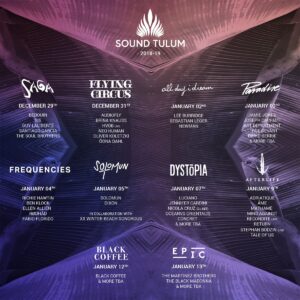 Sound Tulum, el festival convertido en uno de los fenómenos recientes más destacados de la escena underground internacional, ha terminado de anunciar la programación completa de eventos para su segunda edición, la cual se desarrollará entre el 29 de diciembre y el 13 de enero en Tulum en el que es uno de los emplazamientos indígenas más exóticos y mágicos del mundo.