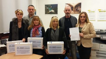 Hoy a la 11:30 se ha procedido a la entrega de 25.00 firmas solicitando la libre elección de lengua en el sistema educativo de las Islas Baleares, en la Delegación de Gobierno para su traslado al Ministerio de Educación, Cultura y Deporte.