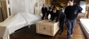43 de los 44 bienes de Sijena que la Justicia ha ordenado devolver a sus legítimos dueños ya se encuentran en el Real Monasterio de Sijena, después del trabajo que han realizado durante toda la noche y mañana en el Museo de Lérida los técnicos del Gobierno de Aragón y la empresa contratada al efecto, escoltados por fuerzas de seguridad del Estado. Desde las 4.00 de la mañana, hora de entrada al centro expositivo, se han sucedido los trabajos de identificación, embalaje y posterior carga y traslado, hasta su llegada a Sijena a las 15.00. Estas piezas se suman a las 51 que regresaron en verano de 2016 procedentes del Museo Nacional de Arte de Cataluña y que desde entonces se pueden disfrutar en el Monasterio.