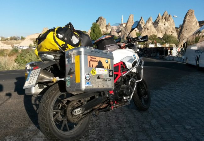 Después de un día disfrutando por pistas y carreteras olvidadas de Turquía, llegué a Capadocia; una espectacular zona de este país donde todavía en la actualidad hay casas excavadas dentro de las pequeñas montañas que conformar todo aquel conjunto. ¡Tener la oportunidad de llegar a sitios tan diferentes y en moto, es toda una gozada!.