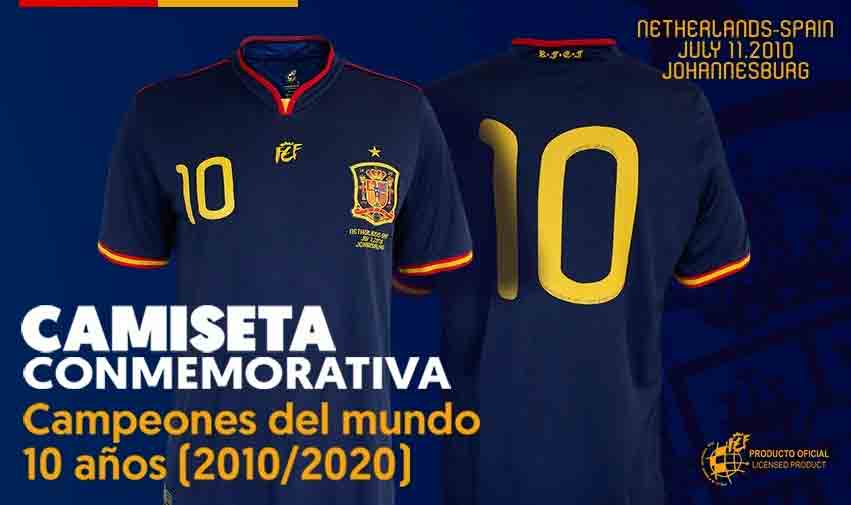 En la tienda de la RFEF, la camiseta se podrá personalizar con el nombre de los 23 ‘héroes’ de Sudáfrica o con cualquier otro nombre. Los aficionados podrán tener así una camiseta como la que llevaba Andrés Iniesta cuando marcó el gol a Holanda en la histórica final del 11 de julio de 2010 en el Estadio Soccer City de la ciudad sudafricana de Johannesburgo.