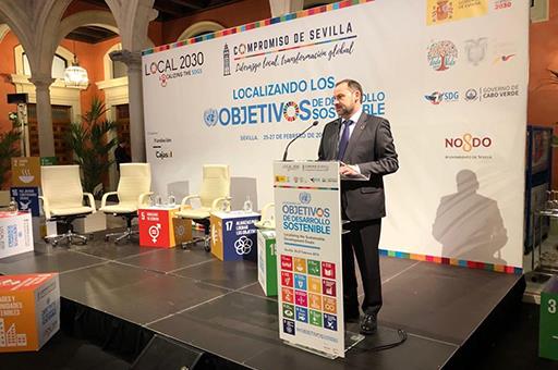 El ministro de Fomento, José Luis Ábalos, ha reafirmado en el acto inaugural de la Jornada «ONU Hábitat: Localizando los Objetivos de Desarrollo Sostenible», celebrado en Sevilla, el compromiso del Gobierno con la Agenda 2030 y los Objetivos de Desarrollo Sostenible.
