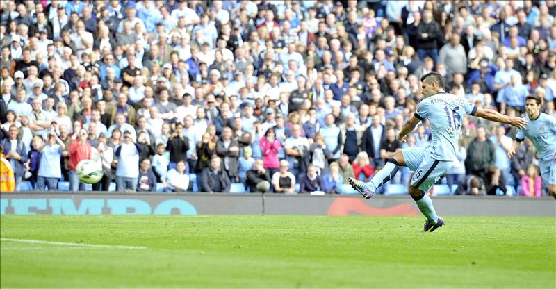 Agüero firmó su hazaña en un encuentro que se desbocó desde el primer minuto, en el que se lanzaron cuatro penaltis, un hito nunca visto en la primera división inglesa desde que se dio por ultima vez hace catorce años, en un Bradford-Derby.