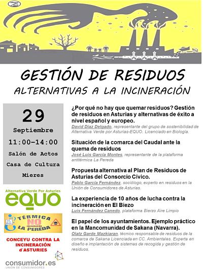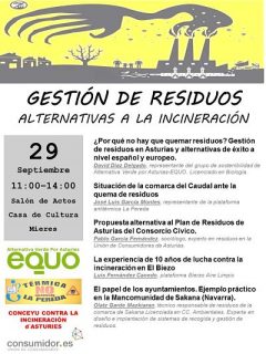 Alternativa Verde por Asturias anunció este jueves mediante un comunicado de prensa que el próximo sábado 29 de septiembre se llevará a cabo en la Casa de Cultura de Mieres, un acto de carácter informativo en relación con nuevas alternativas en la gestión de residuos frente a la incineración.