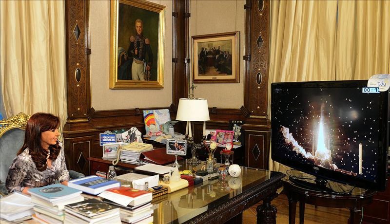 Una vez que la operación fue considerada «exitosa» por los responsables del lanzamiento, la presidenta argentina, Cristina Fernández, dio una mensaje por la cadena nacional de radio y televisión en la que se mostró emocionada y con un «gran orgullo» por este acontecimiento «histórico» para el país.