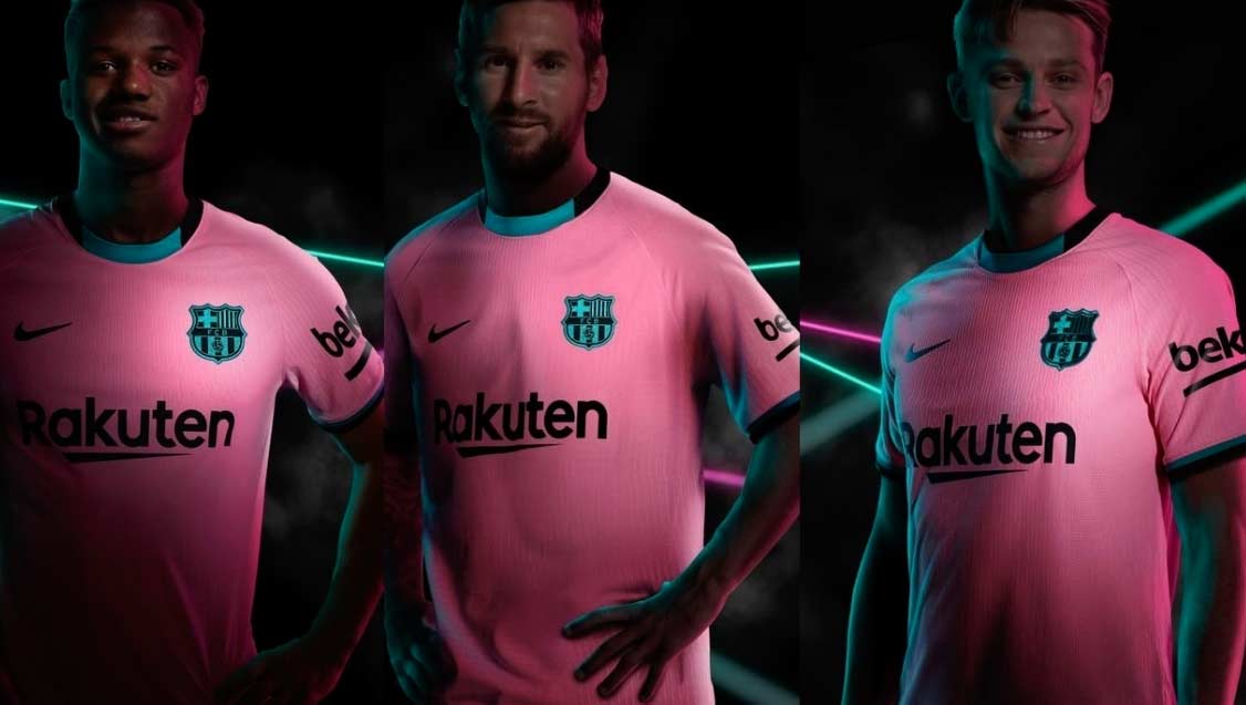 «El rosa del amanecer y el verde azulado del mar nos anticipan un paisaje luminoso, vibrante, mediterráneo, que es en el que se inspira la tercera equipación del FC Barcelona para la temporada 2020/21», explica el club.