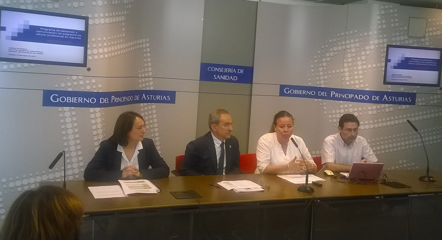 2014_09_17 Presentacion jornada sobre cancer laboralLa Conseyería de Sanidá punxo en marcha nel añu 2011 un programa de detección y comunicación de barruntu de cáncer profesional n’Asturies que dexó estudiar 566 trabayadores diagnosticaos de cáncer en situación de baxa llaboral. Tres la valoración de la hestoria llaboral de los casos, atopáronse 27 con altes probabilidaes de ser clasificaos como enfermedá profesional (5% del total); y n’otros 65 casos (11,5%) acreditóse una relación clara anque menos intensa ente la enfermedá y l’ambiente llaboral. Nel 83,4 per cientu restante de los casos (474 casos) el cáncer considérase una enfermedá común.