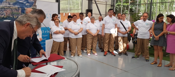 ATADES – Asociación Tutelar Aragonesa de Discapacidad Intelectual, ha formado el equipo de voluntariado para el Centenario del Parque Nacional de Ordesa y Monte Perdido. El equipo se ha presentado hoy en Gardeniers Zaragoza, en un acto presidido por el consejero de Desarrollo Rural y Sosteniblidad, Joaquín Olona, y el presidente de ATADES, Jesús Soto, quienes han firmado además en la adhesión de esta entidad social al Centenario.