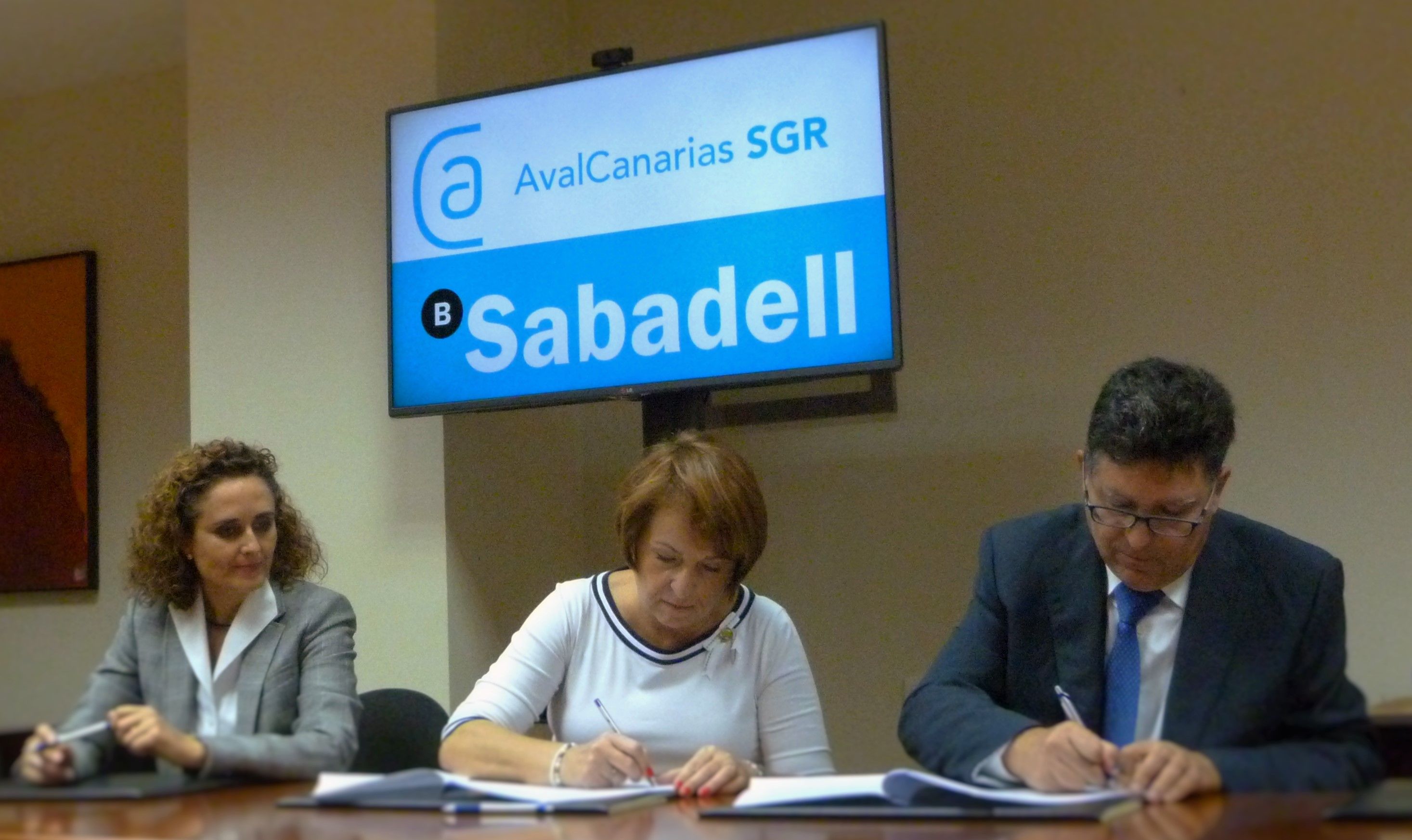 El acuerdo, firmado en las oficinas que la SGR tiene en la calle Albareda de Las Palmas de Gran Canaria, ha contado con la representación de los Directores de Zona del Sabadell, Juan Dalmau Llorens y Candelaria Pérez Gil, y de la Directora General de la SGR, María Gracia Zamorano de la Rosa.