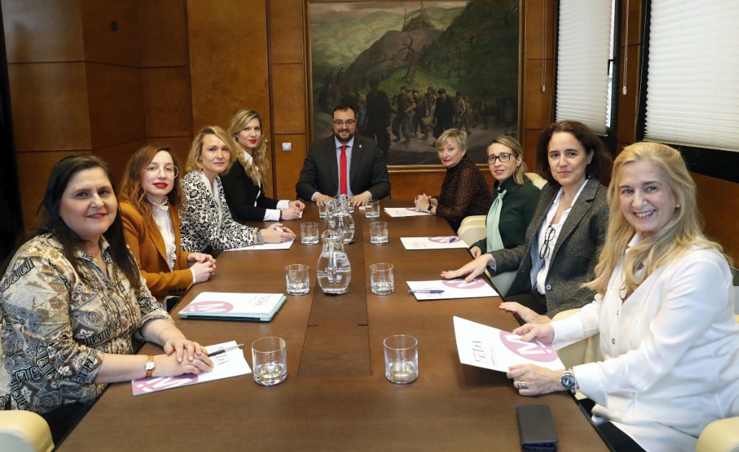 El presidente del Principado, Adrián Barbón, se ha reunido con la junta directiva de la Federación de Empresarias y Directivas de Asturias (Feda).