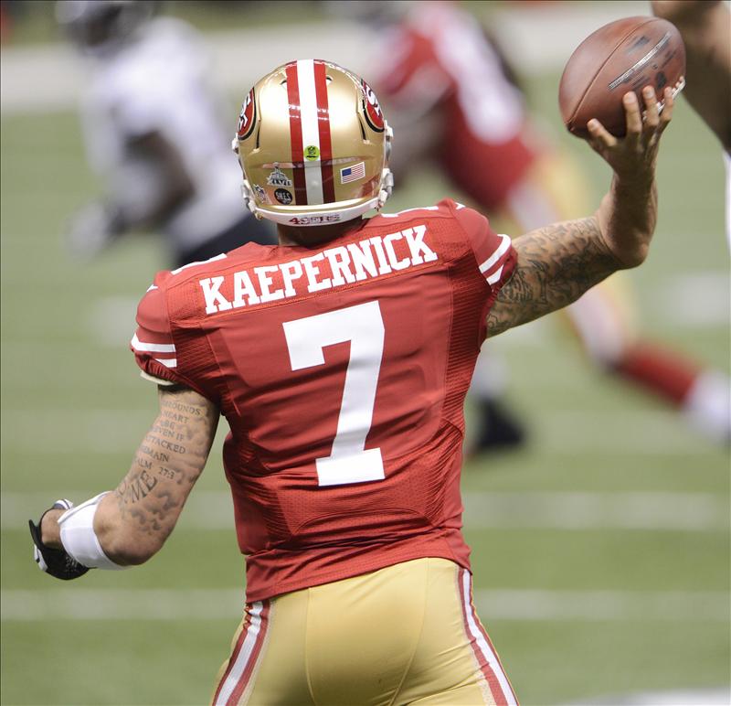 Kaepernick completó 13 de 21 pases para ganancia de 197 yardas, hizo un envío de anotación, no le interceptaron ninguno, y dejó en 108,6 su índice pasador.