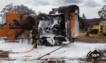 Efectivos de Bomberos del Servicio de Emergencias del Principado de Asturias (SEPA), con base en el parque de Barres, han sofocado el incendio de una máquina tronzadora de madera en una empresa maderera ubicada en la antigua Serrasa, saliendo de Castropol hacia Vegadeo. El fuego calcinó por completo la máquina.