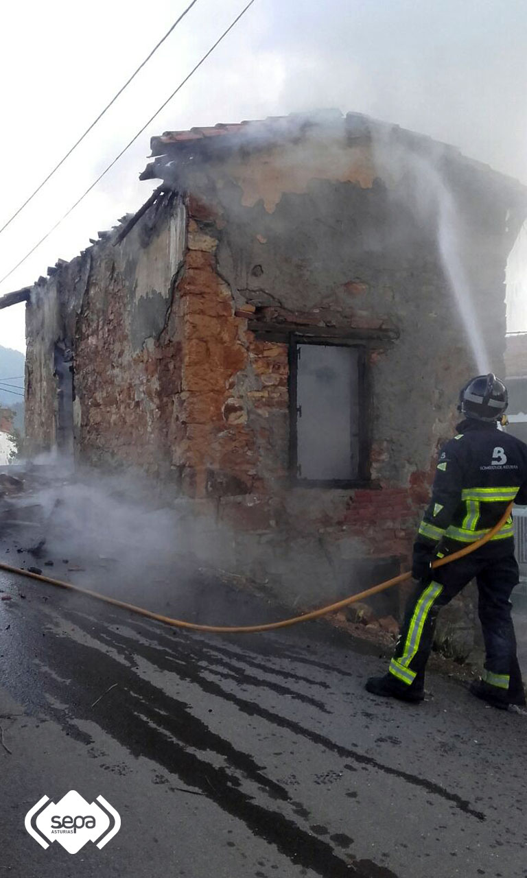 El Centro de Coordinación de Emergencias del 112 Asturias recibió el aviso a las 06.23 horas. En la llamada señalaba que estaba quemando una vivienda abandonada, de piedra, de tres plantas. El la inferior había material de obra.