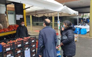 La nueva ubicación ha contado con una afluencia de público que acudía de manera constante y guardando el aforo sin aglomeraciones, entraban al mercado con un recorrido de dirección única, de tal manera que se evitaron los cruces de personas y contactos innecesarios. Se ha hecho mediante un circuito con dos carriles de 4,60 metros, uno de ida y otro de vuelta, que están separados mediante una valla de seguridad. La docena de puestos estaban distanciados dos metros del propio carril, para evitar contacto entre el cliente y la mercancía. Todo ello perfectamente señalizado, con marcas y vallas, así como líneas de seguridad.