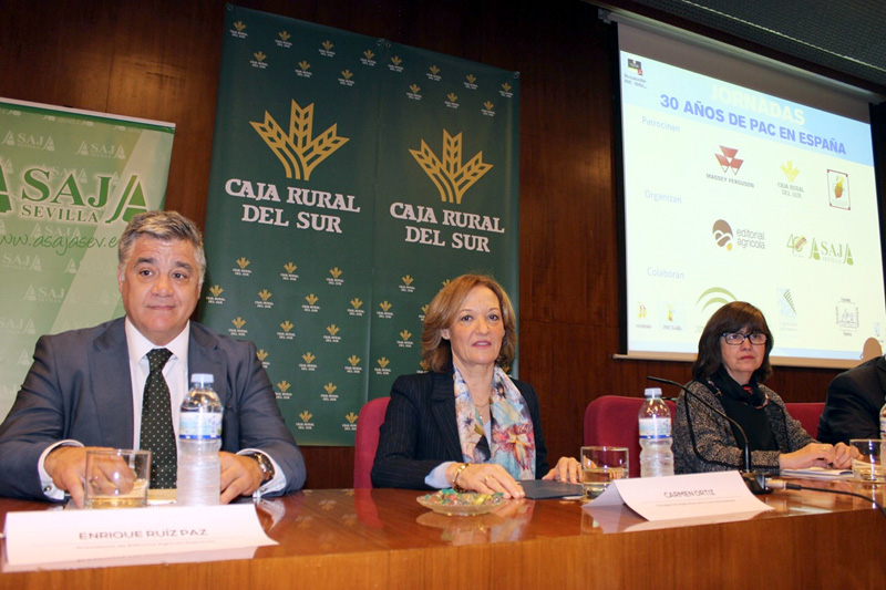 La titular de Agricultura ha hecho estas declaraciones durante la inauguración de la jornada ’30 años de PAC en España’, que organizan Editorial Agrícola y Asaja Sevilla. En el acto de apertura también han participado la presidenta de la Asociación de Periodistas Agroalimentarios de España (APAE), Lourdes Zuriaga, el presidente de la Asociación Española de Economistas Agrarios (AEEA), Tomás García Azcárate, el presidente de Oleoestepa, Alfredo García, el director de Editorial Agrícola, Jesús López, y los exconsejeros de Agricultura Leocadio Marín, Paulino Plata, Isaías Pérez Saldaña y Elena Víboras.