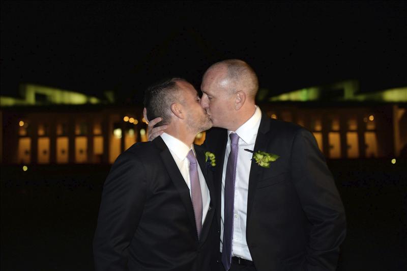 Los primeros en casarse fueron el legislador del estado de Australia Occidental, Stephen Dawson, y su pareja desde hace diez años, Dennis Liddelow, quienes se dieron el «sí quiero» poco después de la medianoche en una ceremonia a las afueras del Parlamento de Camberra.