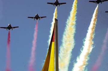 Como broche final, la ‘Patrulla Águila’ sobrevolará el itinerario del desfile y se arriará la bandera nacional para poner el punto final a la celebración del Día de la Fiesta Nacional.