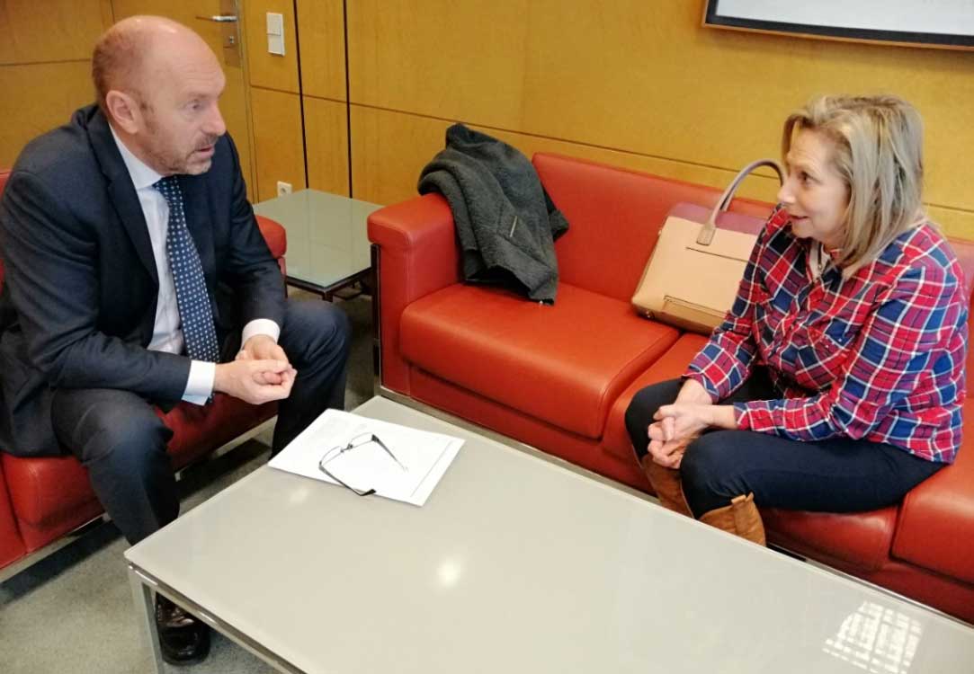 El vicepresidente y consejero de Infraestructuras, Medio Ambiente, y Cambio Climático, Juan Cofiño se ha reunido con la alcaldesa de Santo Adriano, Elvira Menéndez