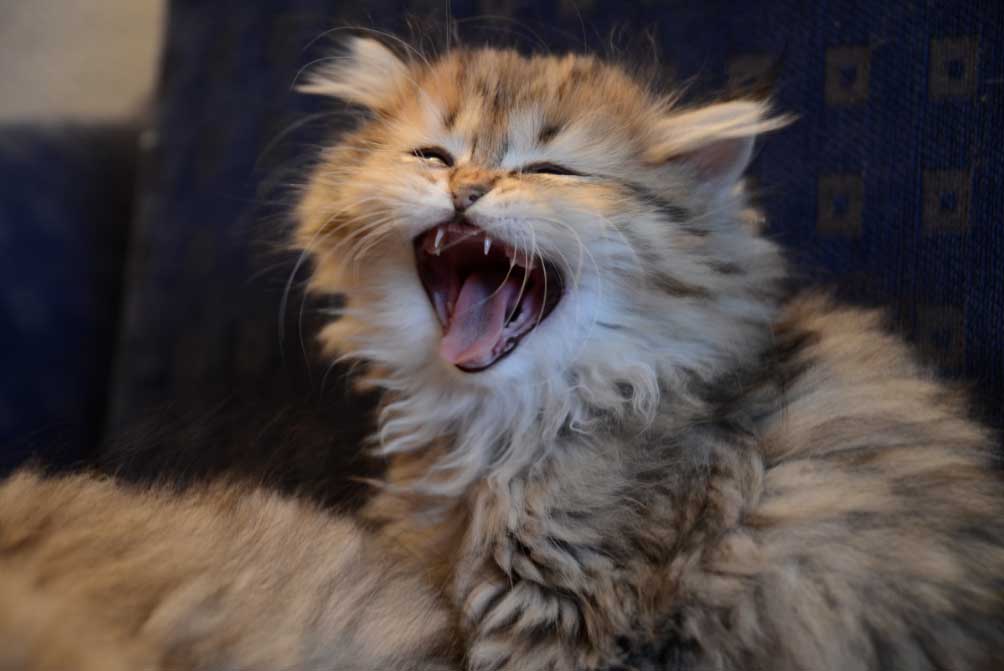 Si el gruñido es grave y corto, quiere decir «¡bien!» o «¡gracias!». Si el sonido es largo y nítido, el gato está diciendo «¡hola!» o «¡ven!».