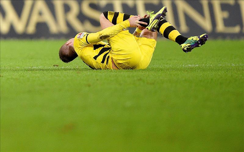 El diagnóstico, que ya se temía de antemano, fue ratificado hoy un día después de que Reus sufriese una brutal entrada del defensa Marvin Bakalorz, del Padeborn, que le produjo la lesión.