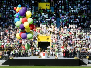 «Todos podemos hacer algo y hacer frente con nuestra confianza a quienes dividen y hostigan», señaló Leyendecker durante el servicio religioso que cerró el encuentro en estadio del club de fútbol Borussia Dortmund.