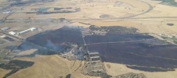Una primera estimación indica que el fueron quemó en torno a 110 hectáreas, en su mayoría campos de cereal tanto cosechado como todavía sin cosechar. Una mínima parte de esta superficie estaba poblada de carrascas. La causa se debió a trabajos agrícolas que estaba realizando en la zona una máquina cosechadora.