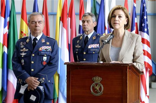 La ministra de Defensa, María Dolores de Cospedal, ha visitado el Centro de Operaciones Aéreas Combinadas (CAOC-TJ, Combined Air Operations Centre Torrejón) que la OTAN tiene ubicado en la base aérea de Torrejón, en Madrid, desde donde se controla el espacio aéreo del flanco sur de la Alianza.