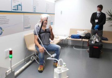 En el diseño del casco ha participado como asesor y para realizar la supervisión el médico de la UCI Pediátrica del Hospital Universitario Central de Asturias, Alberto Medina, que ha realizado una prueba con el casco para comprobar su funcionamiento.