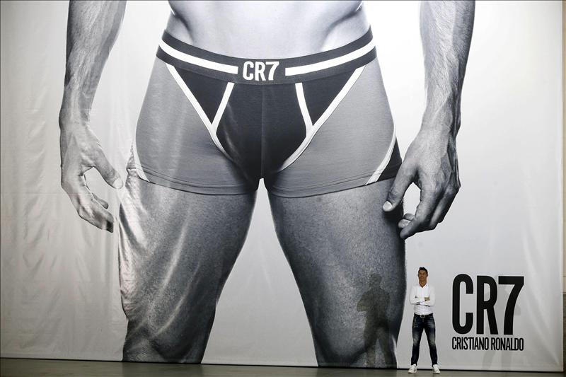 Una poderosa imagen como parte de la decoración propuesta por la empresa danesa JBS Textile, en la que el portugués luce un nuevo modelo de su propia colección CR7 que, según figura en la web de la marca, ronda los 25 euros.
