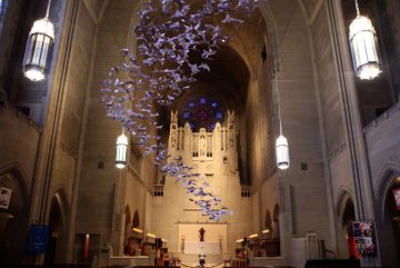 Nueva York, 13 abr (dpa) – El artista muniqués Michael Pendry colgó cerca de 2.000 palomas de papel en una iglesia de la ciudad de Nueva York, informó Pendry.