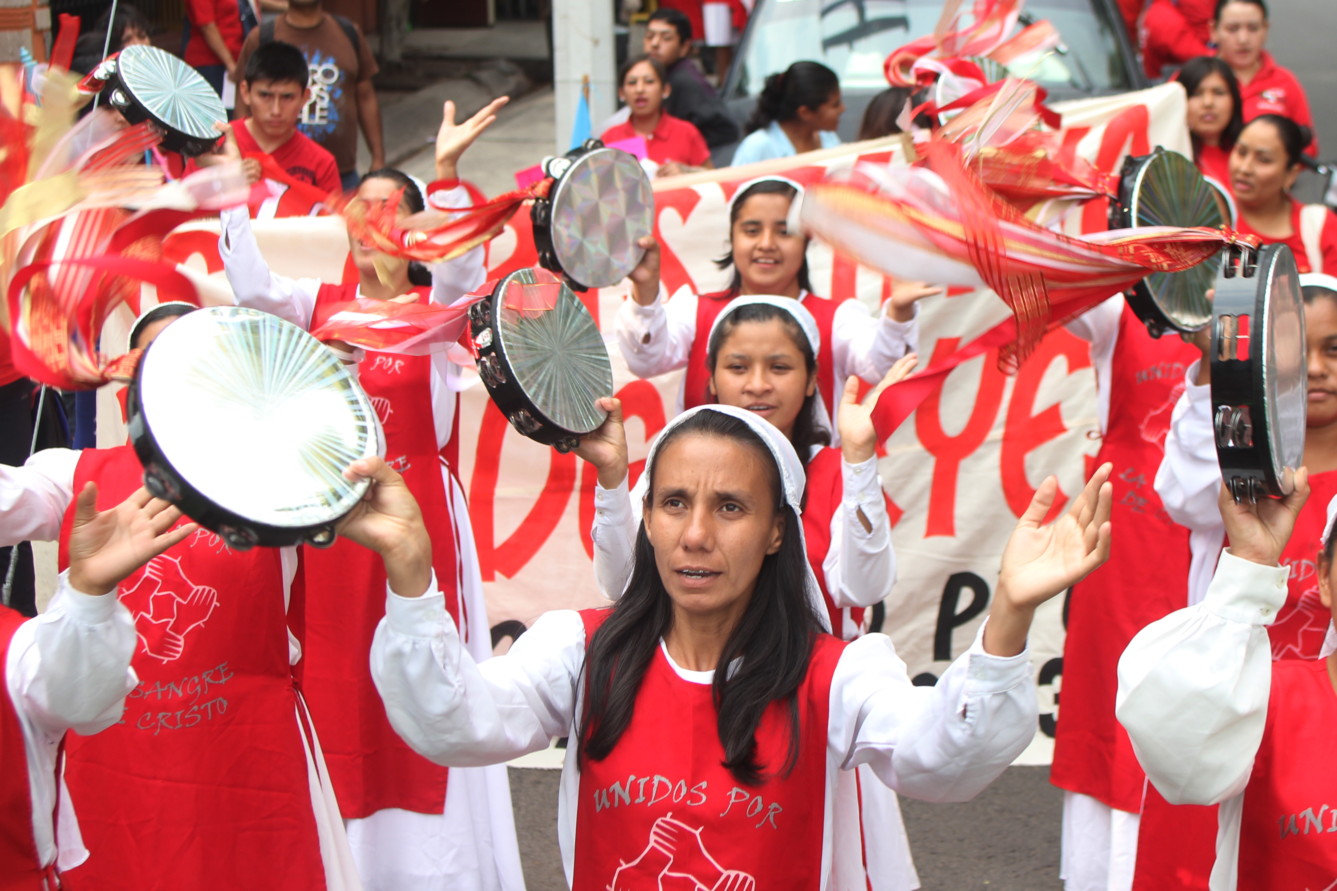 Desfile religioso durante la Marcha por el Testimonio en Queretaro
