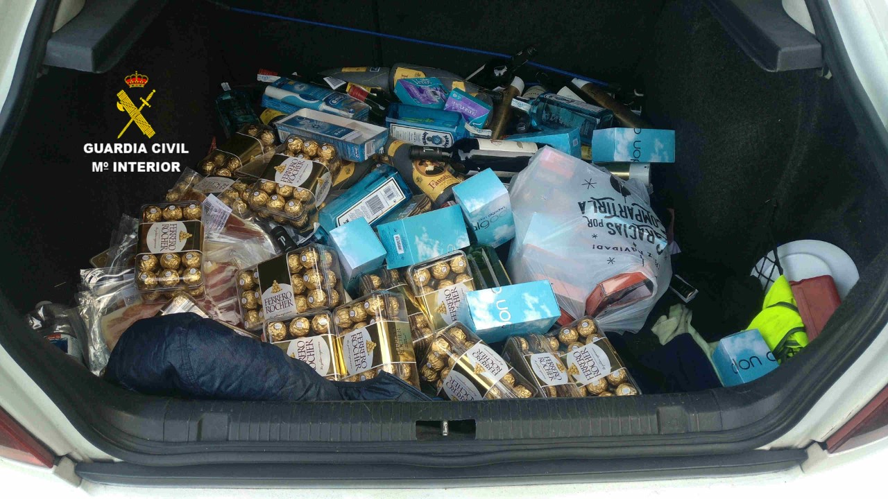 Tras realizar un reconocimiento en el vehículo en el que viajaban, y que habían dejado estacionado en las inmediaciones del supermercado, los agentes encontraron en el interior del maletero los siguientes efectos: