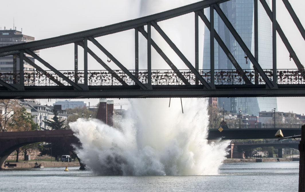 Fráncfort, 14 abr (dpa) – Una bomba estadounidense de la Segunda Guerra Mundial fue detonada hoy de forma controlada en el río Meno, en el centro de la ciudad alemana de Fráncfort, lo que originó una fuente de agua de varios metros de altura.