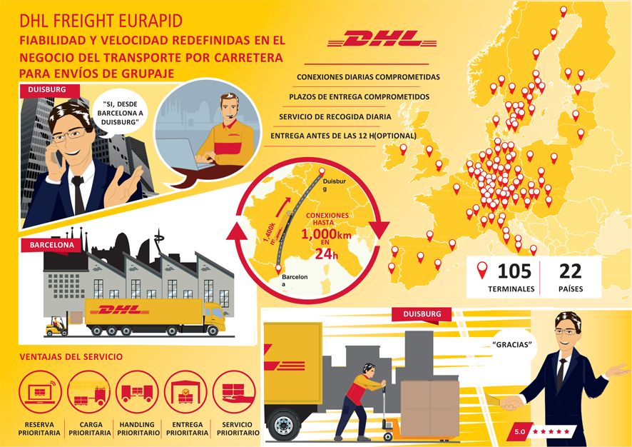 Como proveedor líder de logística en el mundo, DHL evalúa las necesidades de sus clientes y ofrece altos estándares de calidad. Los servicios mejorados de Eurapid son una prueba más del esfuerzo de DHL Freight para ofrecer unos estándares ambiciosos, al reducir los plazos de entrega y esforzarse por liderar la calidad.