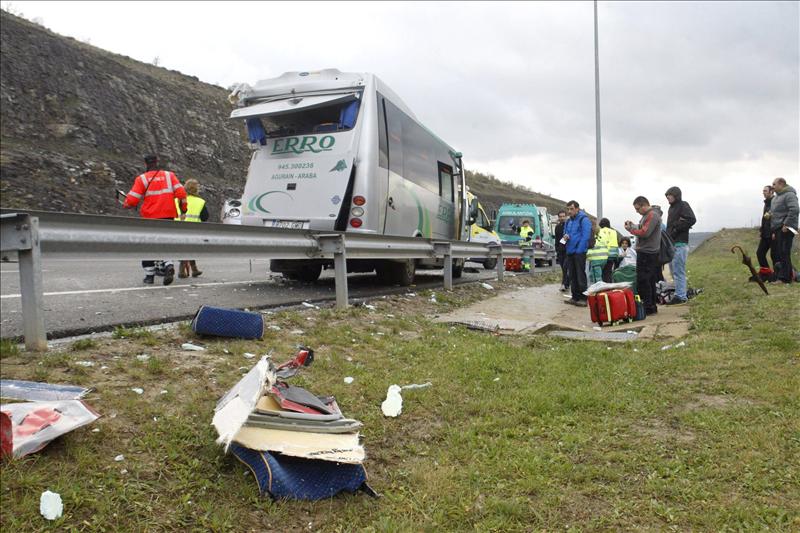 En el accidente, ocurrido ayer a las 14.20 horas en la AP-1, a la altura del municipio alavés de Arrazua-Ubarrundia, resultaron heridos todos los pasajeros y la conductora del autobús, en total 18 personas, siete de los cuales fueron ingresados en los dos hospitales públicos de Vitoria y en el del Alto Deba, en Gipuzkoa, según datos del Departamento vasco de Seguridad.