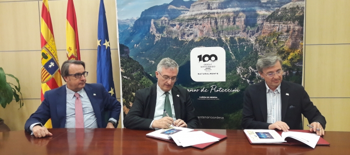 El Acuario de Zaragoza ha firmado su adhesión al Centenario del Parque Nacional de Ordesa y Monte Perdido. De esta forma, el Acuario de Zaragoza muestra su compromiso con la sostenibilidad, en el marco de su política empresarial. El acuerdo, por el que se suma al Acontecimiento de Excepcional Interés Público (AEIP), ha sido suscrito entre el consejero de Desarrollo Rural y Sostenibilidad, Joaquín Olona, y Alfonso González, director general del Parque de Atracciones de Zaragoza, empresa que gestiona el Acuario de Zaragoza.